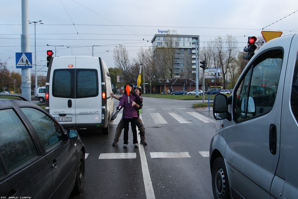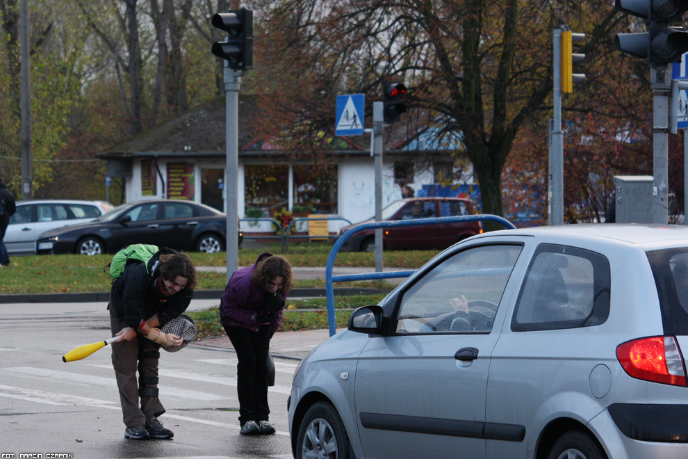 Sympatyczna para z Hiszpanii podróżuje po Europie, a na dalszą podróż zarabiają między innymi wykonując pokazy żonglerki na ulicach odwiedzanych miast. Tym razem trafili do Gdańska, a swój pokaz wykonywali na skrzyżowaniu Pomorskiej, Chłopskiej i Gospody.